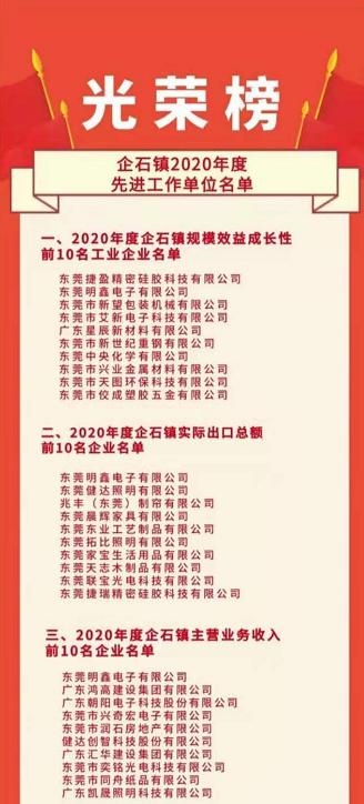 3月3日上午,企石鎮(zhèn)召開2020年度工作總結(jié)大會,發(fā)布了《企石鎮(zhèn)2020年度先進工作單位名單》,包括《2020 年度企石鎮(zhèn)規(guī)模效益成長性前10名工業(yè)企業(yè)名單》《2020 年度企石鎮(zhèn)實際出口總額前10名企業(yè)名單》《2020 年度企石鎮(zhèn)主營業(yè)務(wù)收入前10名企業(yè)名單》等10份名單。會議對2020年度企石鎮(zhèn)主營業(yè)務(wù)收入前10名企業(yè)進行了現(xiàn)場表彰。新望公司有幸入列:企石鎮(zhèn)2020年度規(guī)模效益成長性前10名。